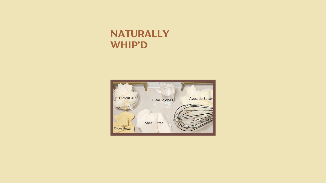 All Natural Products made from AVOCADO BUTTER-SHEA BUTTER-COCOA BUTTER-COCONUT OIL-JOJOBA OIL